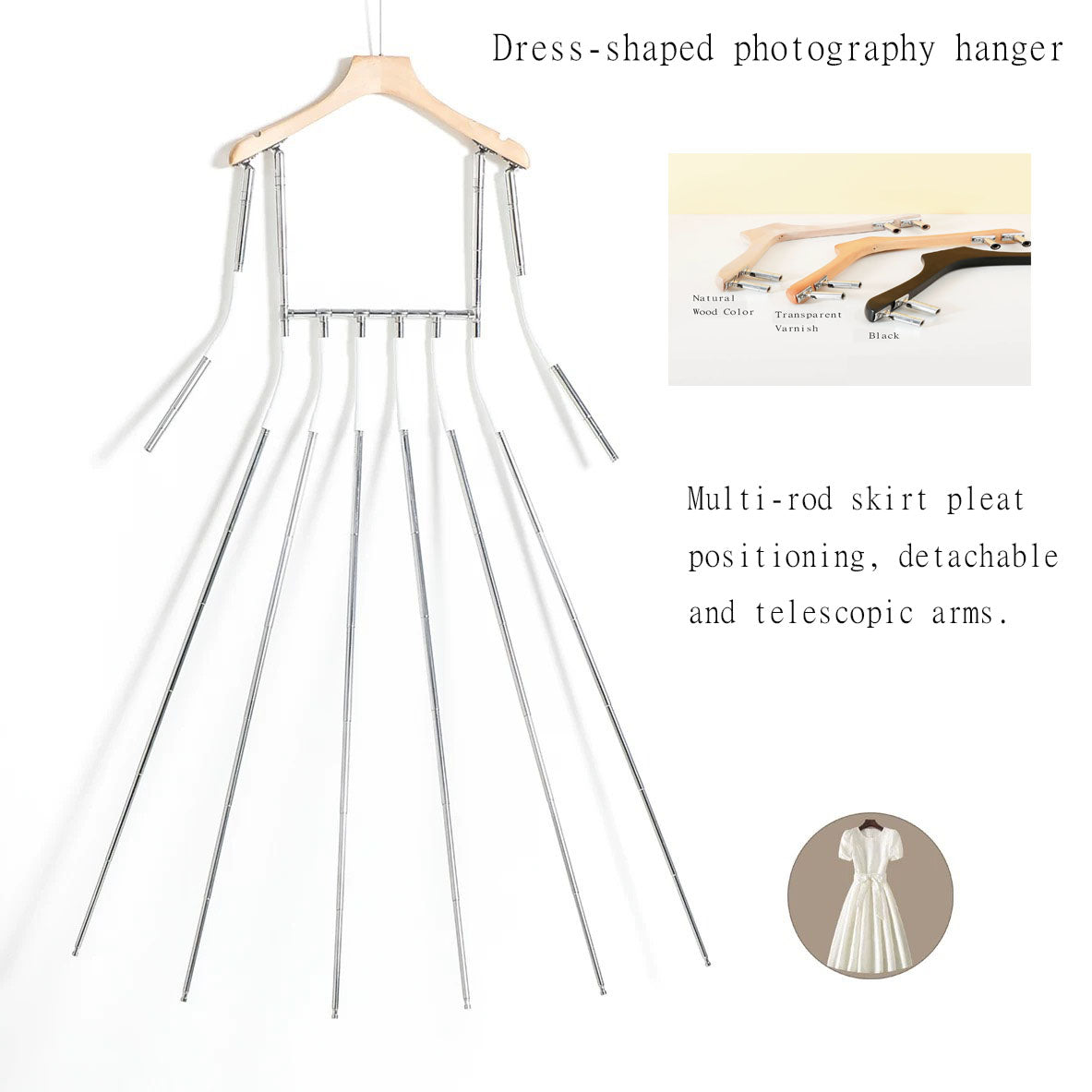 Dress Photography Hanger with 6 Rods for Skirt Pleat Positioning